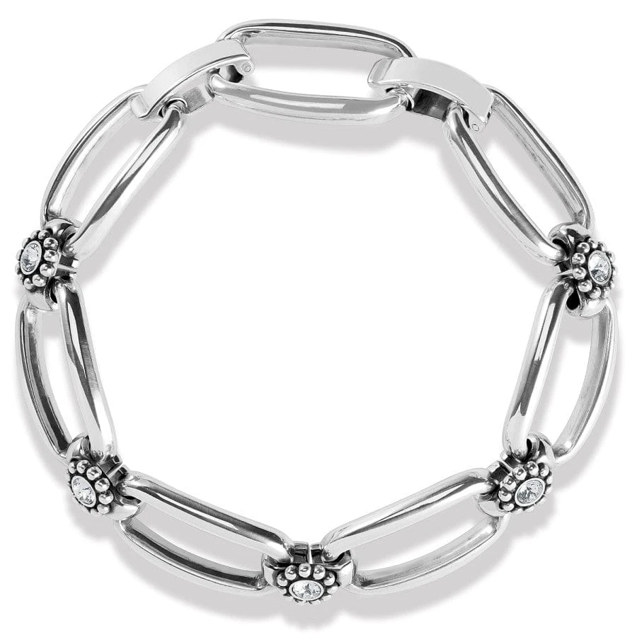 Bold modern links are connected by diamond-like medallions on this sparkling silver bracelet.